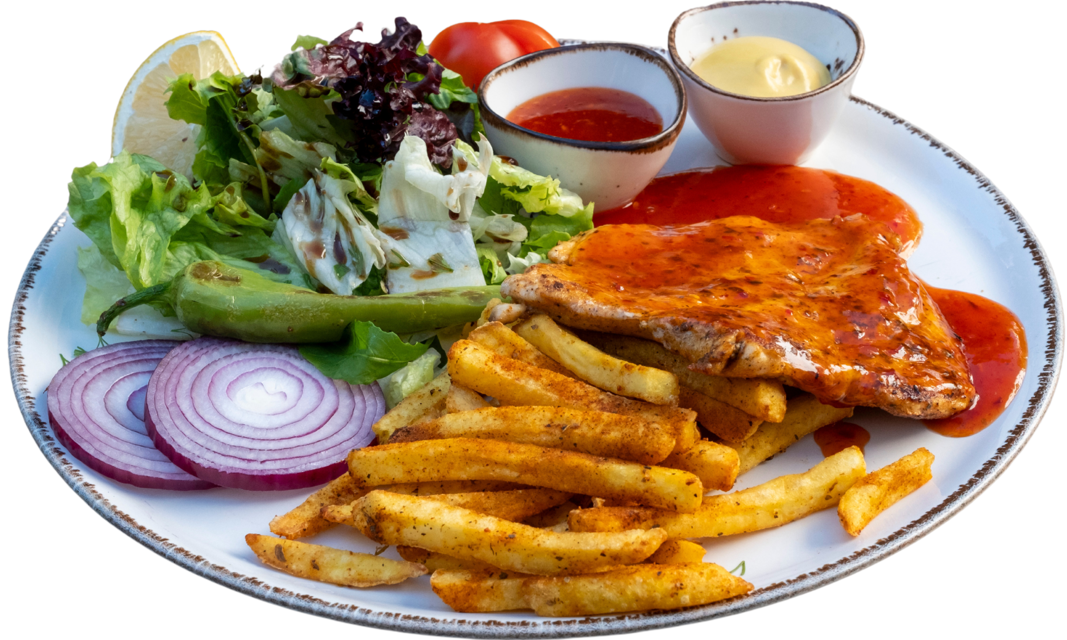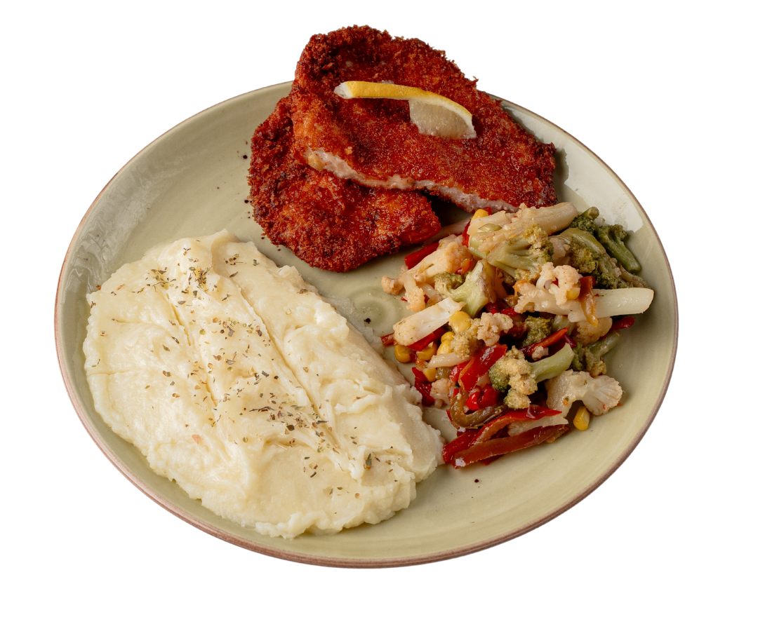TAVUK SCHNITZEL-HAŞLANMIŞ GARNİTÜR-PATATES PÜRESİ