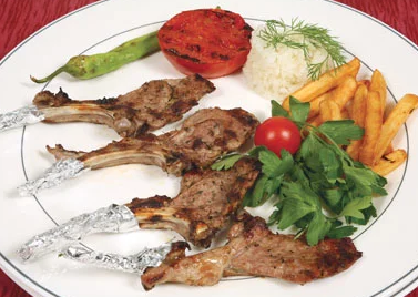 4 ADET KUZU PİRZOLA - PİLAV-PATATES KIZARTMASI-AKDENİZ YEŞİLLİKLERİ-PİŞMİŞ BİBER-DOMATES