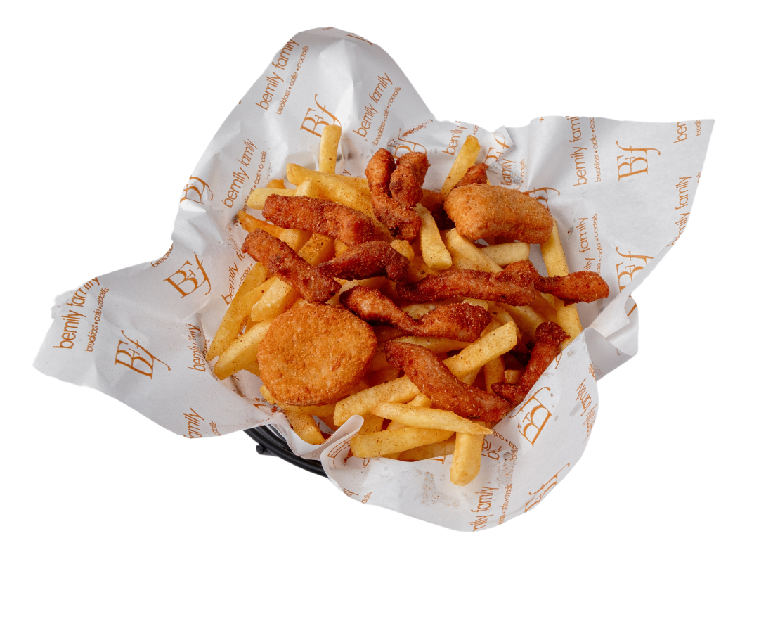Parmak patates, çıtır tavuk parçaları ve nugget