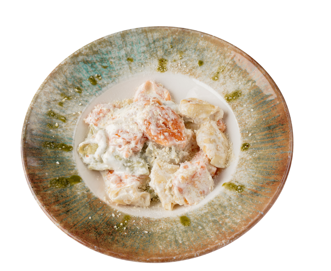 3 RENKLİ PEYNİR DOLGULU TORTELLİNİ-KREMA-SARIMSAK-TOZ PARMESAN-PESTO SOS