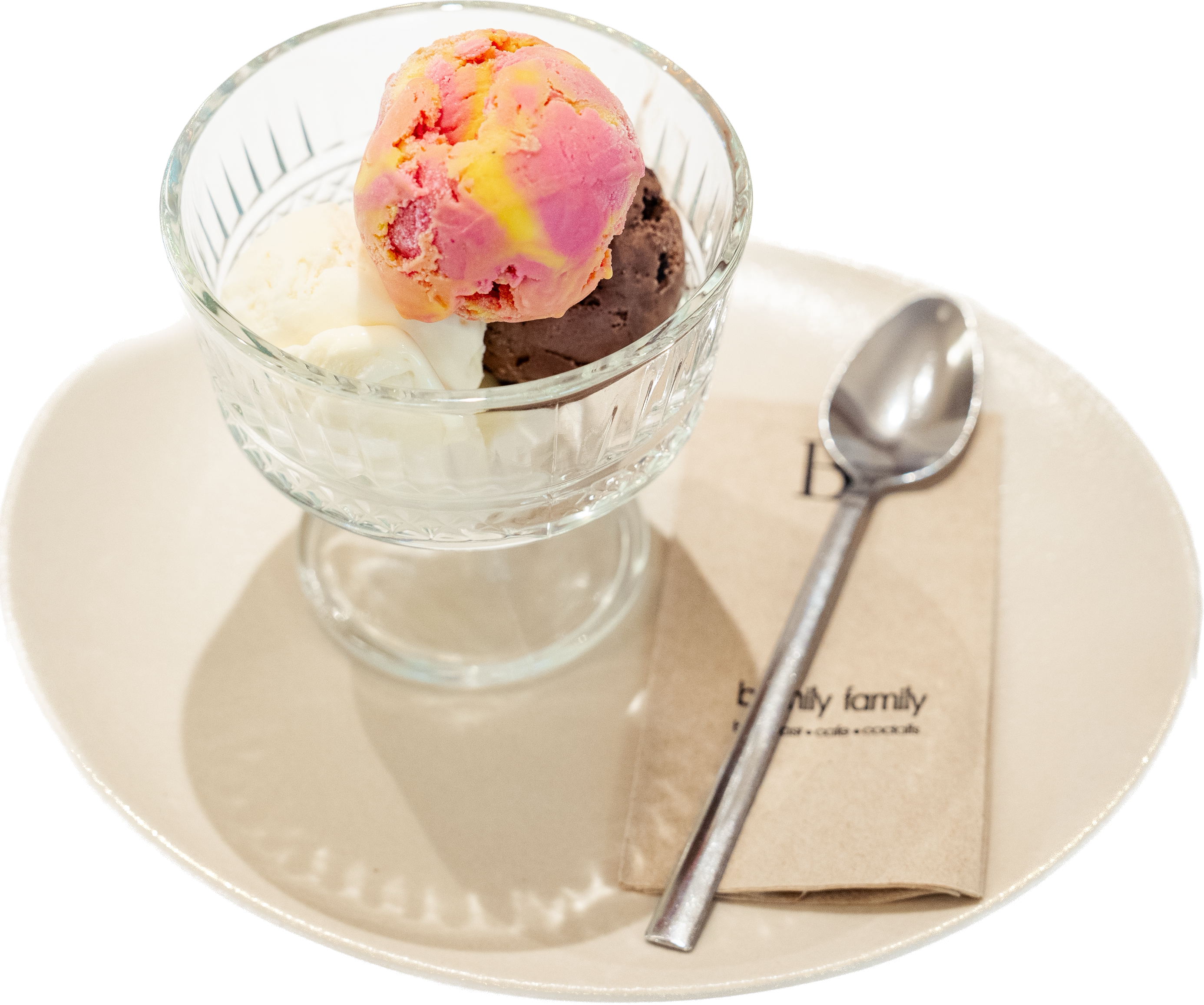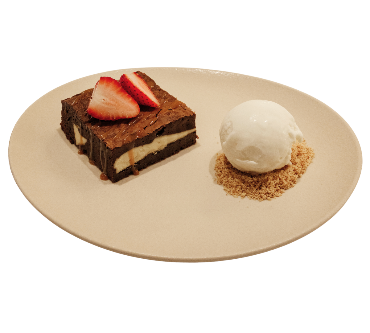 Bir top vanilyalı dondurma ile servis edilir