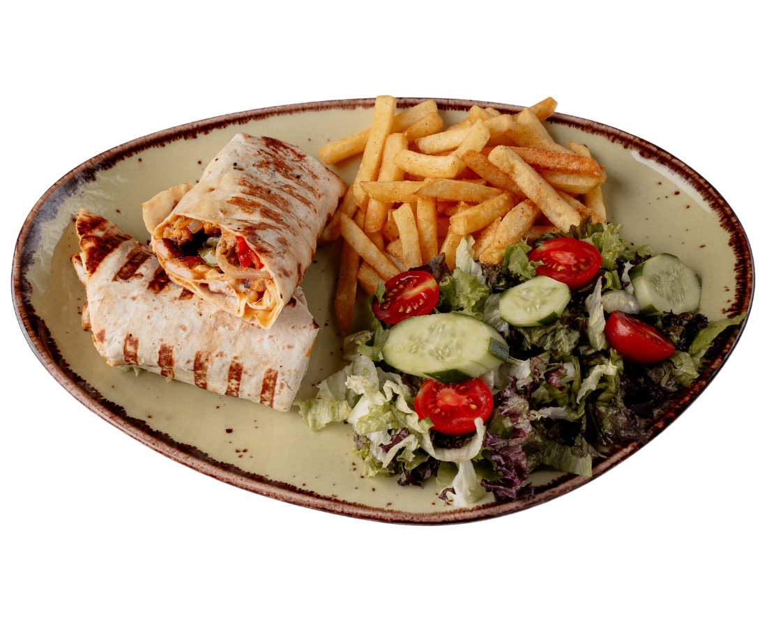 JULYEN TAVUK PARÇALARI-KAŞAR PEYNİRİ-CHEEDAR PEYNİRİ-SOĞAN-BİBER-LOLOROSSO-DOMATES-SALATALIK-PARMAK PATATES